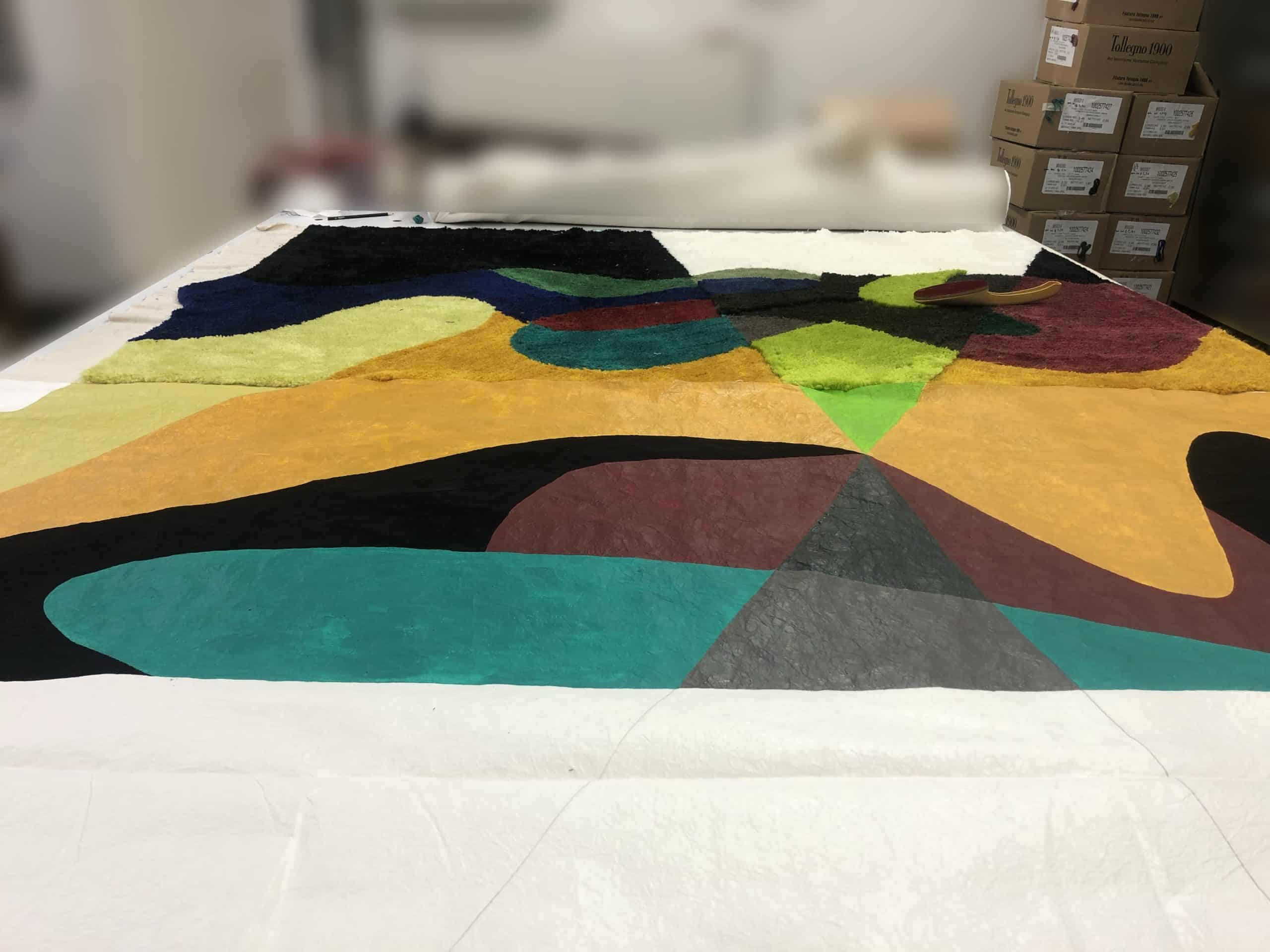 Ho scelto principalmente Harmony, 100% extrafine merino wool. La sua regolarità e compattezza mi hanno permesso di controllare con precisione densità, intreccio e altezza del vello nel processo di tufting, garantendo stabilità e uniformità cromatica. La decisione è stata guidata anche dall’ampia gamma di colori già disponibile nella cartella Tollegno 1900, che mi ha consentito di sviluppare le variazioni desiderate senza interventi aggiuntivi.